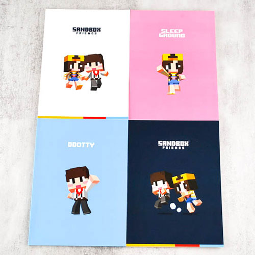 귀여운 샌드박스 이미지가 그려진 A4 사이즈 노트입니다.