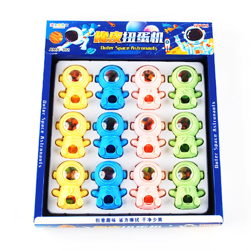 우주인 모양의 지우개 뽑기 장난감입니다.