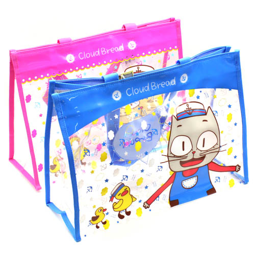 구름빵 캐릭터가 그려져 있는 투명 비치백입니다.