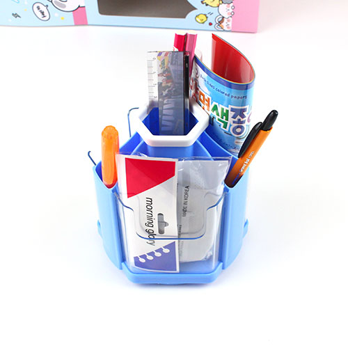 빙글빙글 돌아가는 회전 펜꽂이에 다양한 문구류가 가득!
