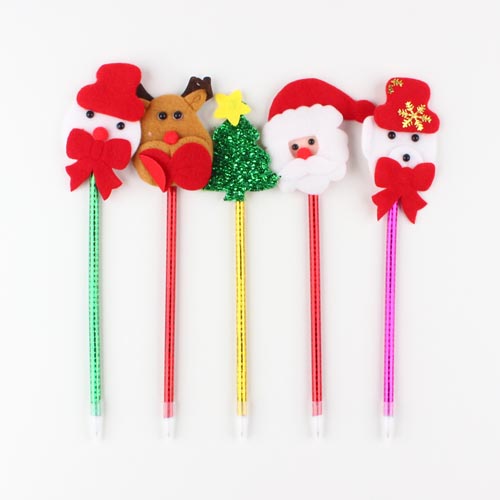 크리스마스 얼굴인형장식이 달린 검정색 볼펜입니다