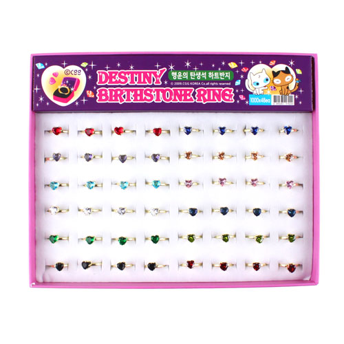205B] 1000 뉴 행운의 탄생석 하트 반지