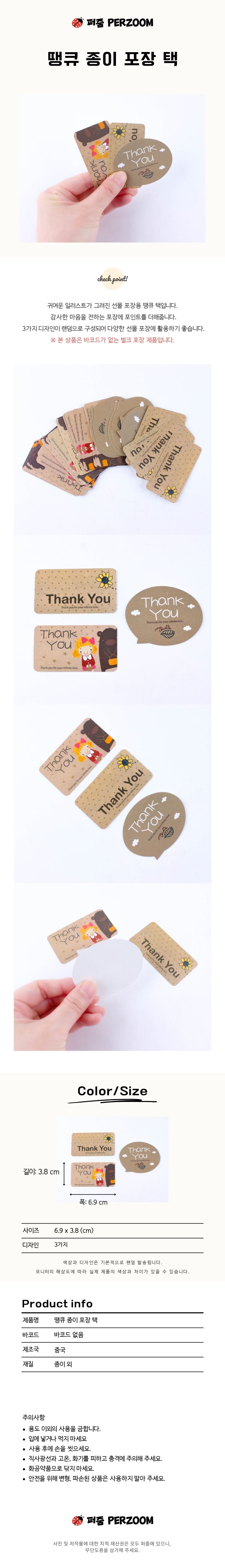200-3D] 땡큐 종이 포장 택
