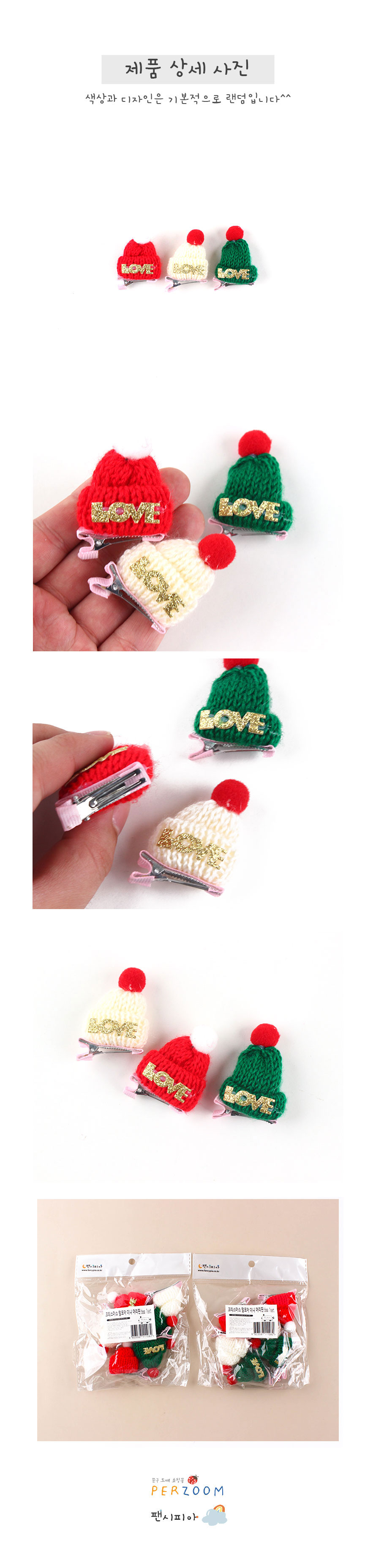 500 크리스마스 털모자 미니 머리핀