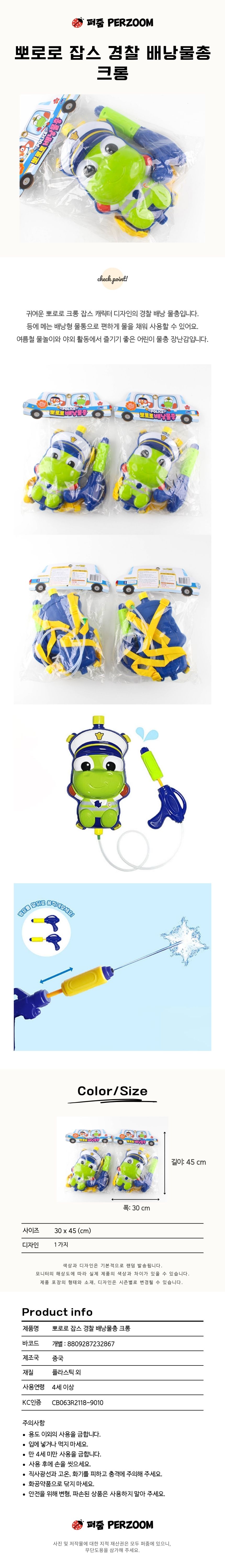 102D] 13000 뽀로로 잡스 경찰 배낭물총 크롱